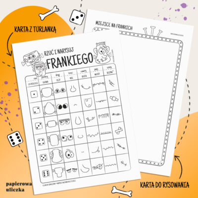 Turlanki czyli rzuć i narysuj to materiał cyfrowy, przeznaczony do samodzielnego wydruku. Nie jest wysyłany na żadnym nośniku materialnym. Link do pobrania otrzymasz po zakupie na wskazany w zamówieniu adres e-mail. Jest on ważny 60 dni i umożliwia 3 krotne pobranie pliku.